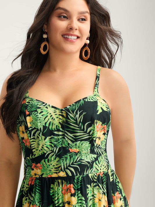Cactus Holiday Print Cut-Out Back Jumpsuit