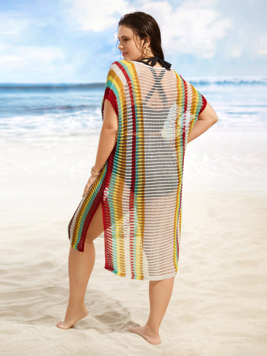 Contrast Striped Dolman Sleeve Split Side Swim Cover Up