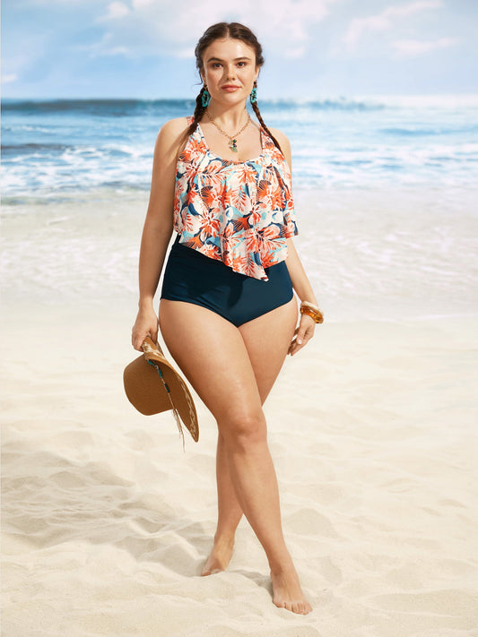Floral Print Tiered Ruffles One Piece Swimsuit