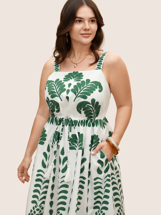 Tropical Print Drawstring Tassels Cami Dress