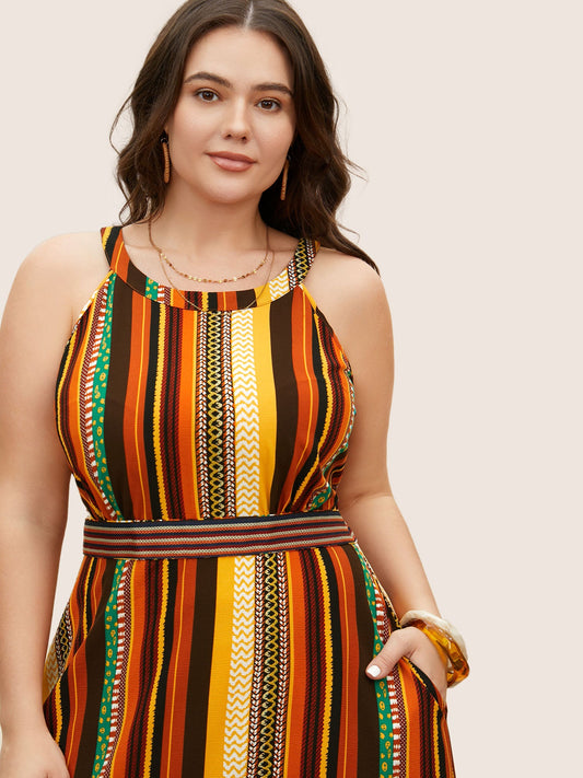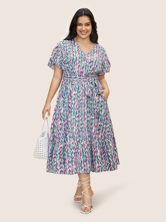 Boho Print Tie Knot Ruffle Sleeve Blouse