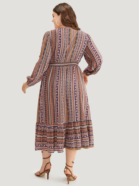 Bandana Striped Lantern Sleeve Patchwork Dress