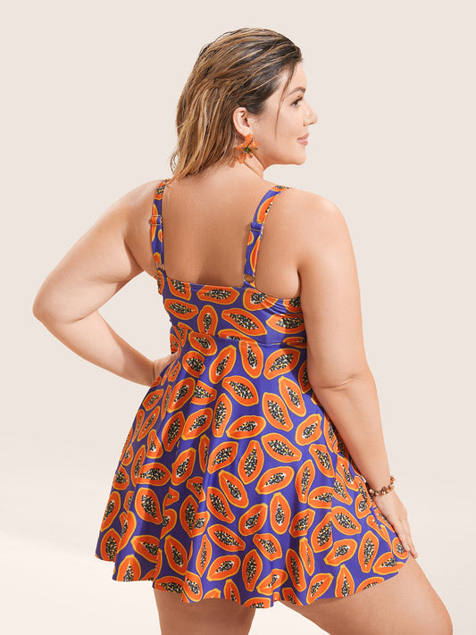 Fruit & Vegetable Print Crossover Cami Swim Dress
