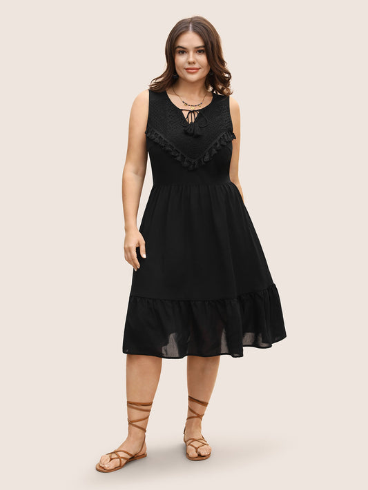 Crochet Lace Mesh Texture Ruched Swim Dress