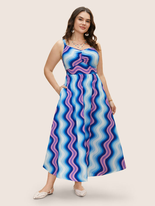 Contrast Webbing Ruffle Cap Sleeve Dress