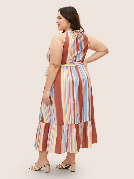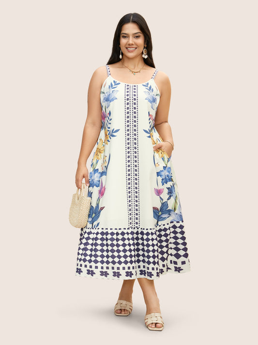 Boho Print Patchwork Ruffle Hem Cami Dress