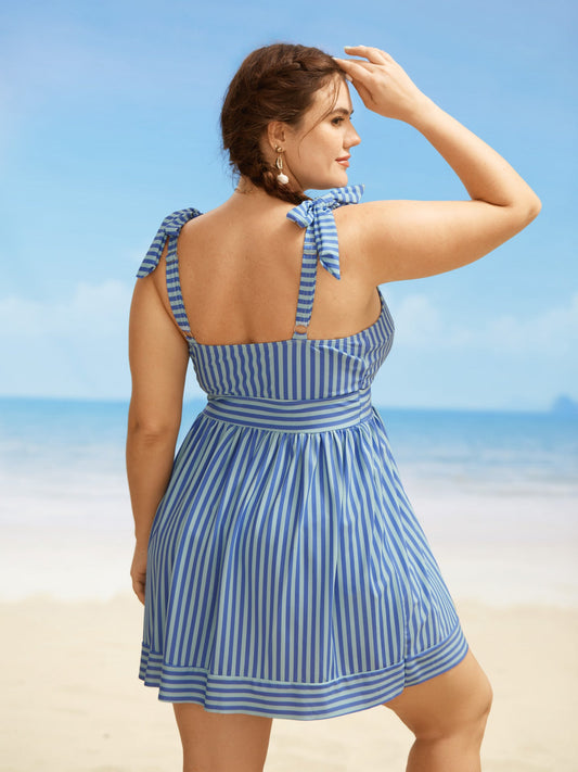 Tropical Print Patchwork Gathered Knotted One Piece Swimsuit