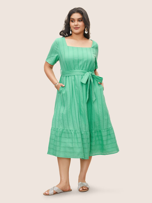 Square Neck Texture Patchwork Ruffle Hem Dress