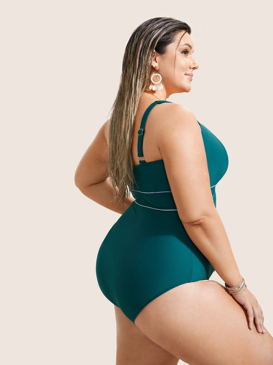 Contrast Trim Ruched Heart Neckline One Piece Swimsuit