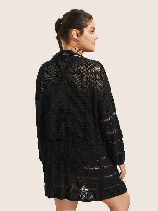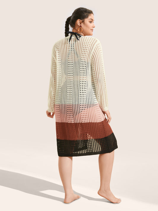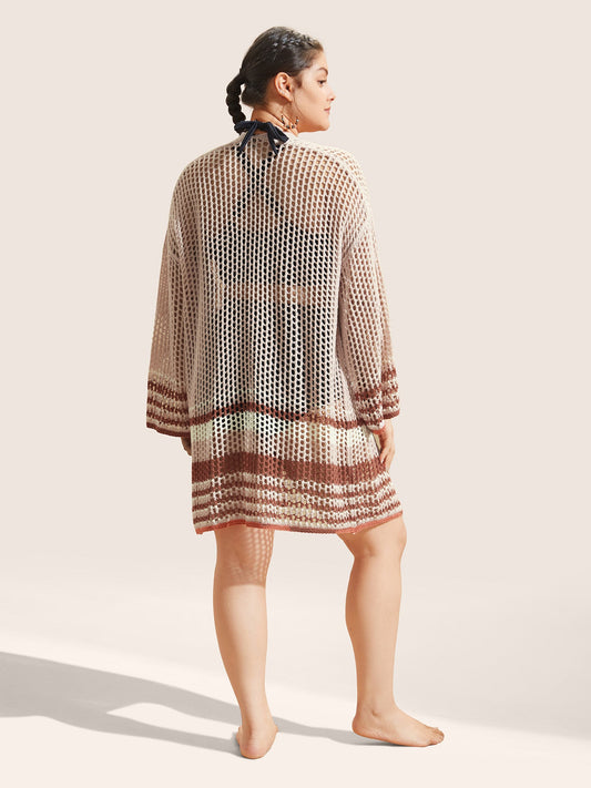 Contrast Striped Pointelle Knit Bell Sleeve Swim Cover Up