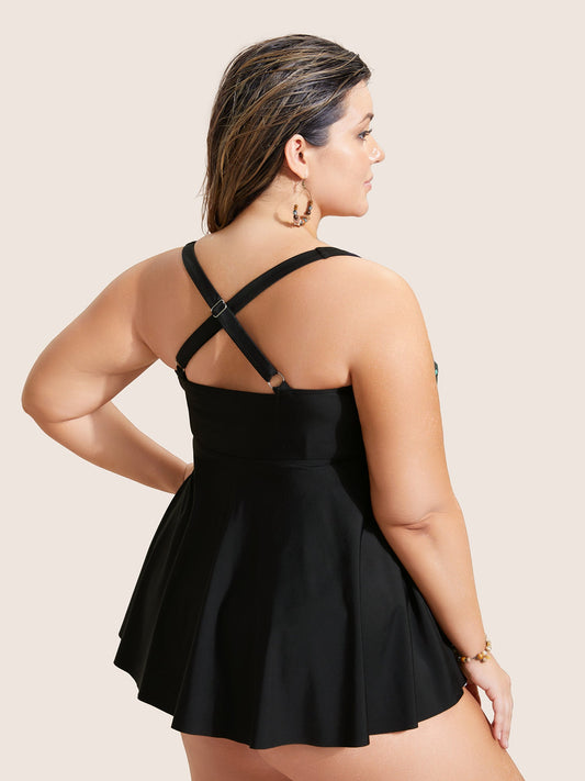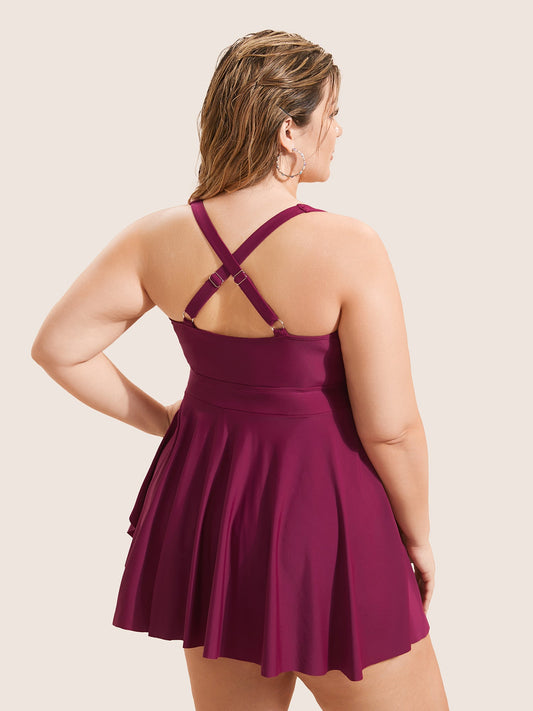 Plain Crossover Knotted Asymmetrical Hem Swim Dress