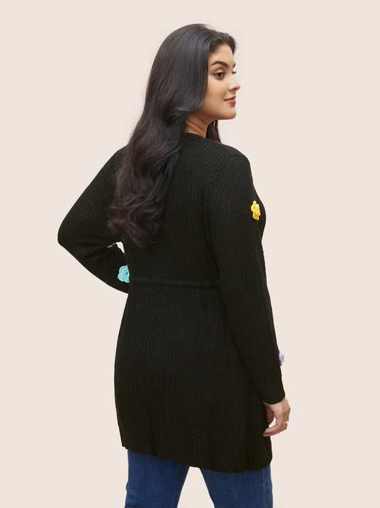 Colored Floral Plisse Drawstring Tunic Cardigan