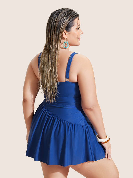 Solid Surplice Neck Gathered Swim Dress