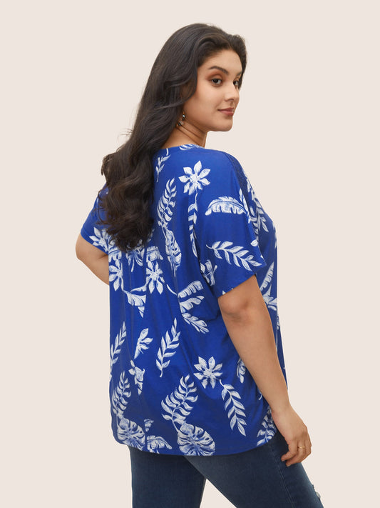 Plants Woven Ribbon Patchwork Batwing Sleeve T-shirt