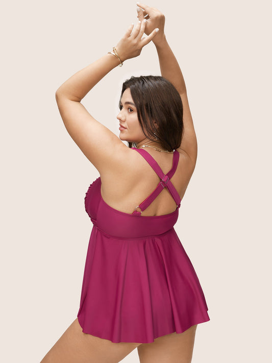 Solid Metal Detail Square Neck Ruched Swim Dress