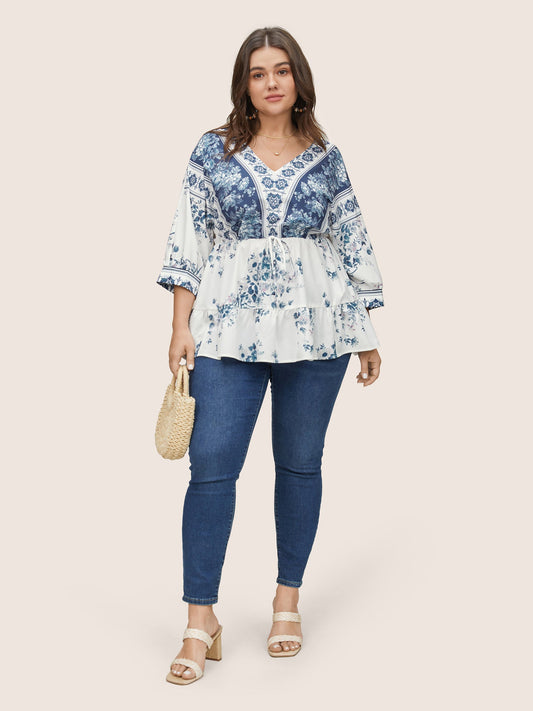 Tropical Print Patchwork Crisscross Hanky Hem Swim Dress