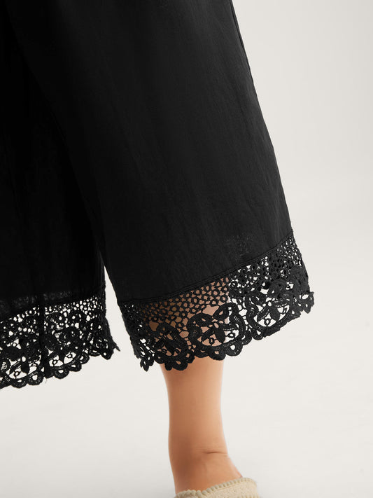 Cotton Scalloped Lace Hem Wide-Leg Pants