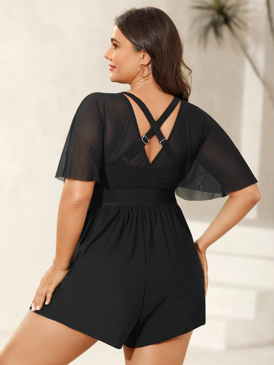 Sheer Sleeve Fitted One-Piece Swimsuit