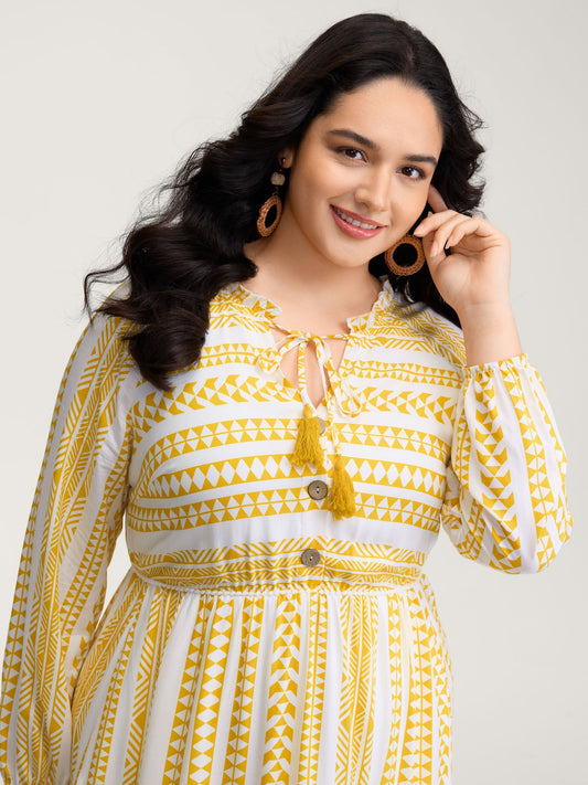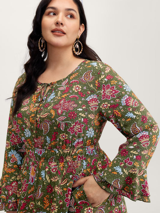 Floral Print Adjustable Drawstring Waist Midi Dress