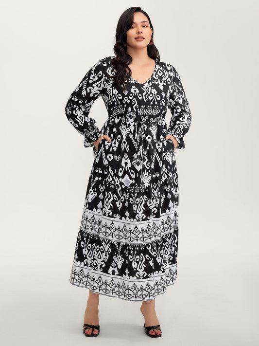 Cotton Pockets Shirred Waist Tiered Maxi Dress
