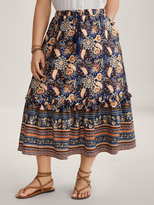 Boho Print Tiered A-Line Maxi Skirt