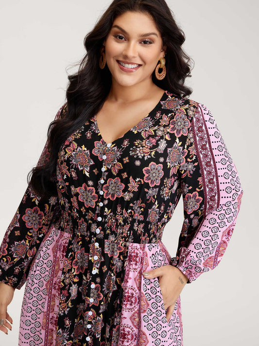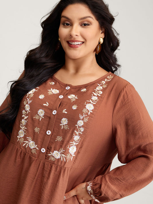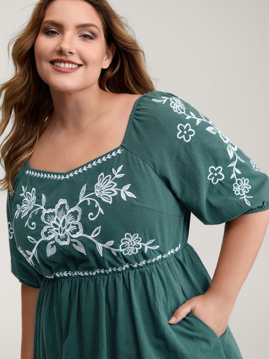 Pure Cotton Floral Embroidery Knee-Length Dress