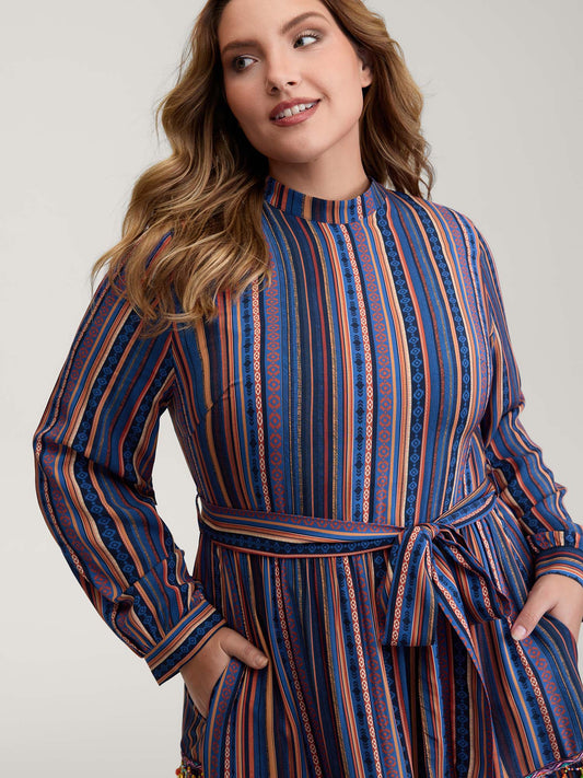 Stripe Tassels Stretchy Waist Pockets Maxi Dress
