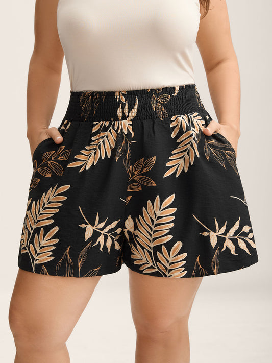 Tropical Leaf Print Straight-Leg Shorts