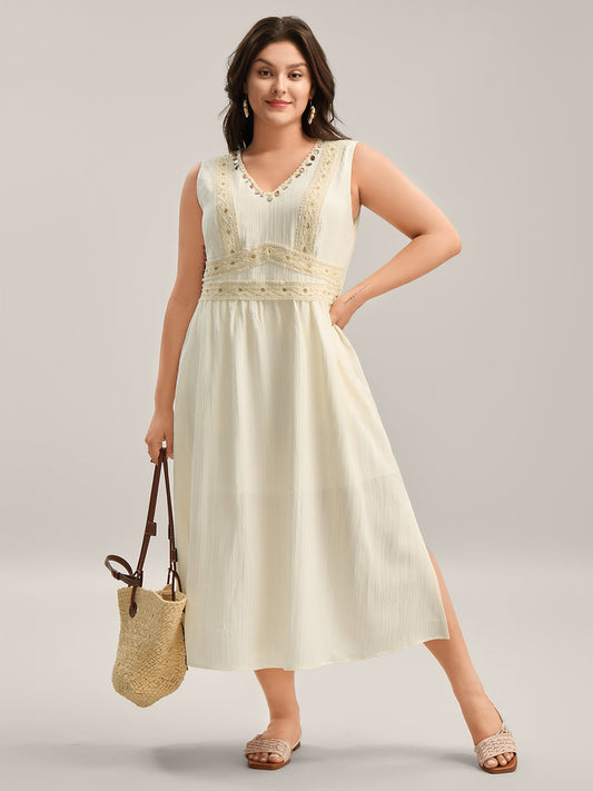 Anti-Float Tie Floral Print Embroidered Swim Dress
