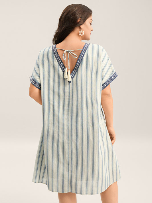 Ruched Mesh Adjustable Drawstring Swim Dress