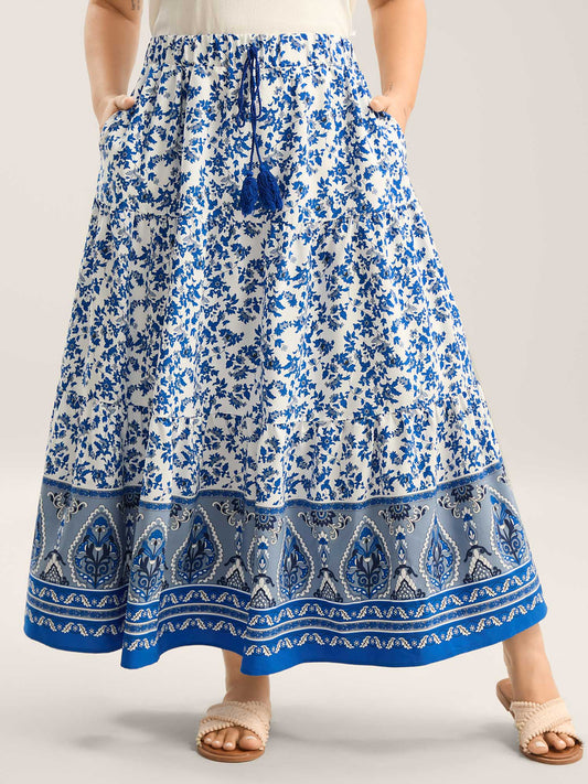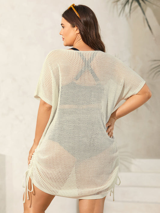 Crochet Floral Knotted Drawstring Swim Cover-Up
