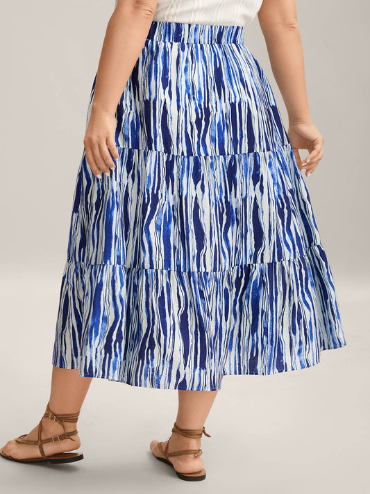 Nautical Stripes Belted Tiered Maxi Skirt