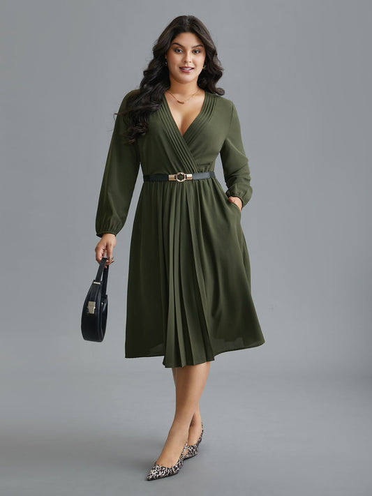 Surplice Neckline Elastic Waist Midi Dress