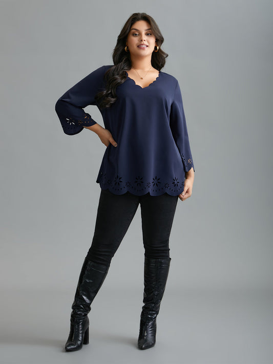 Laser Cut Design V-Neck Blouse