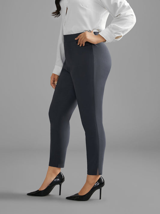 Mid Rise Solid Split Hem Pants