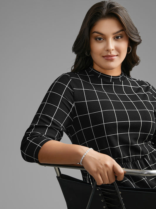 Vertical Striped V-Neck Tab Sleeve Blouse