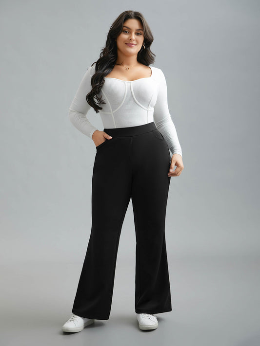 Stretchy Waist Pockets Flared Pants