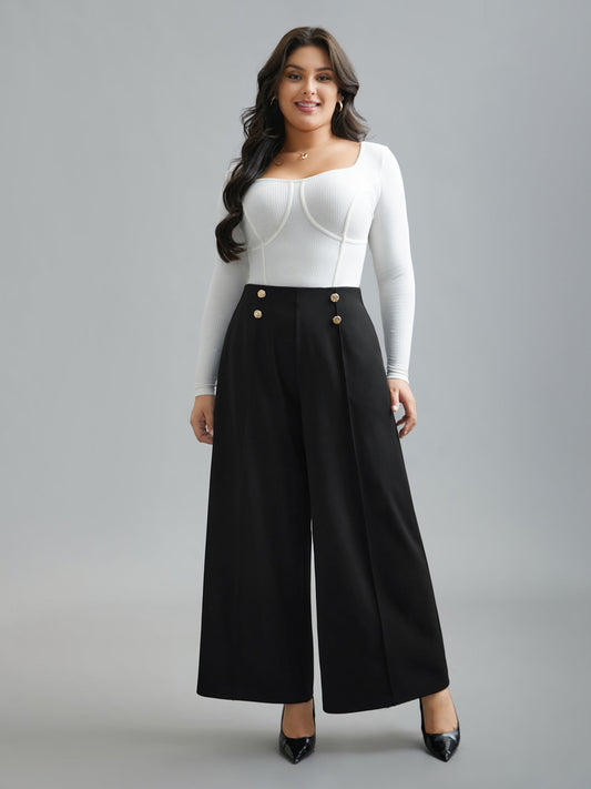No-Gap Waist Seamed Side Button Pants