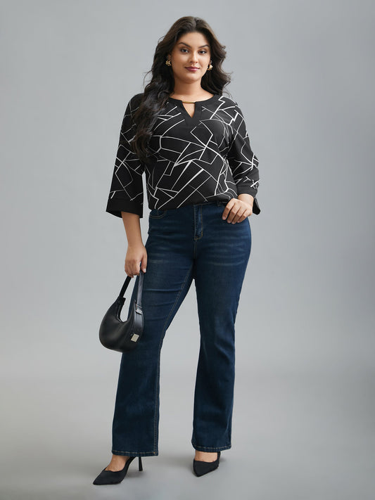 Geometric Print Metal Detail Spliced Blouse