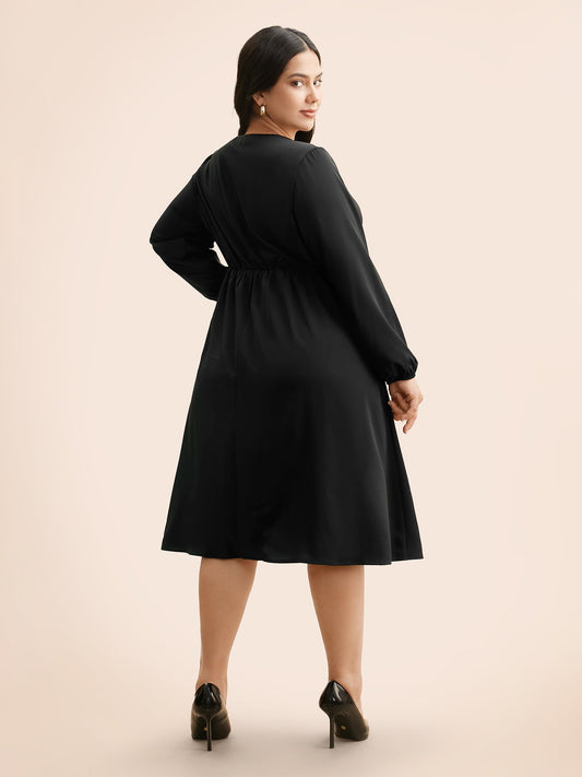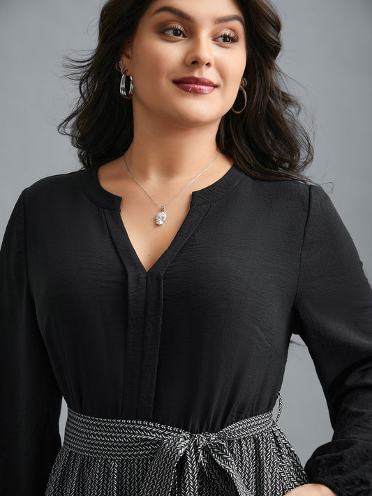 Notched Collar Textured Smocked Cuffs Dress