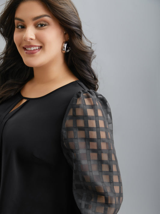 Sheer Textured Sleeve Neck Cut-Out Shirt