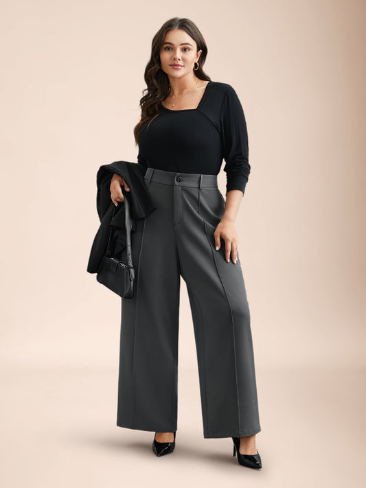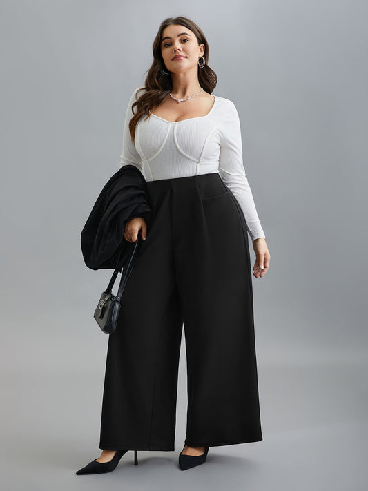 Solid Pleated Wide-Leg Pants