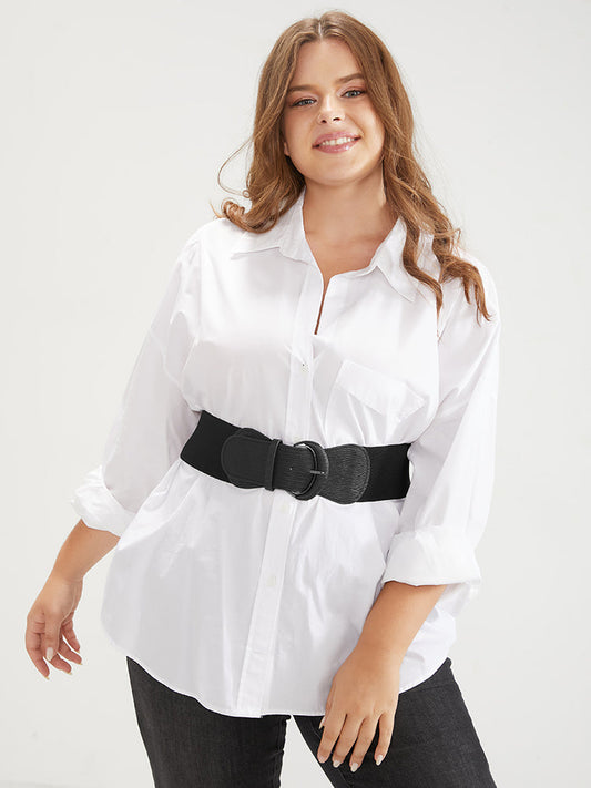 Plain Paperbag Waist Asymmetrical Hem Pocket Button Detail Pants