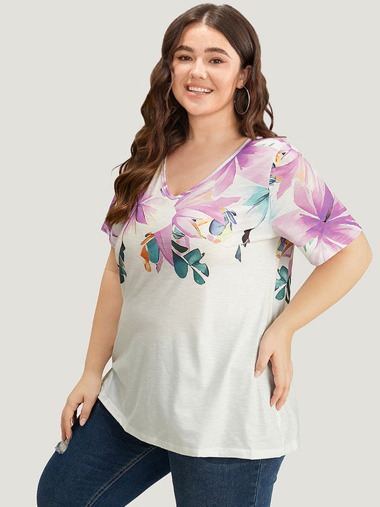 Geometric Print Belted Button Detail V Neck Ruffles Dress
