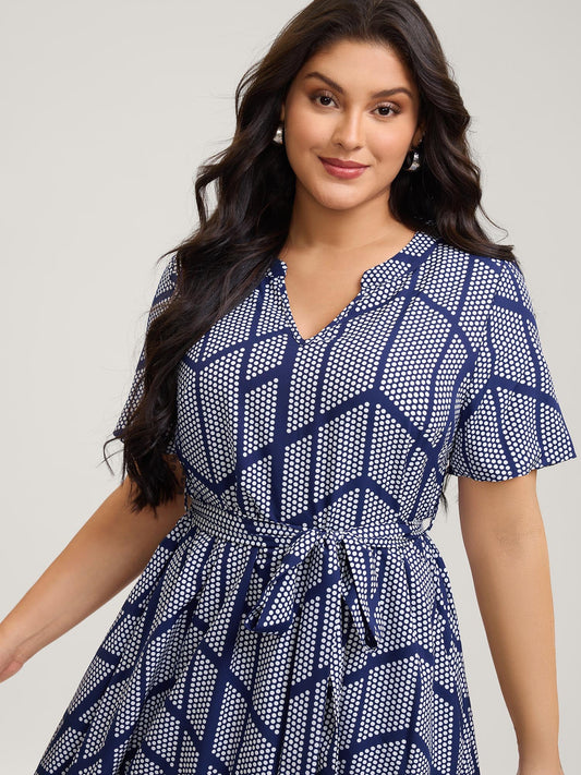 Ring Buckle Cinched-Waist Shirred Midi Dress