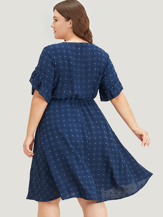 Polka Dot Pocket Cut Out Petal Sleeve Dress