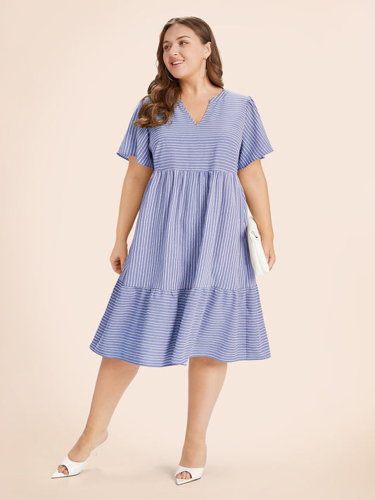 Striped Patchwork Notched Flutter Layered Babydoll Dress
