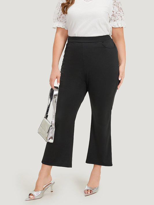 Solid Elastic Waist Slant Pocket Bootcut Pants