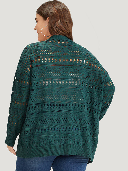 Geometric Eyelet Open Front Loose Cardigan