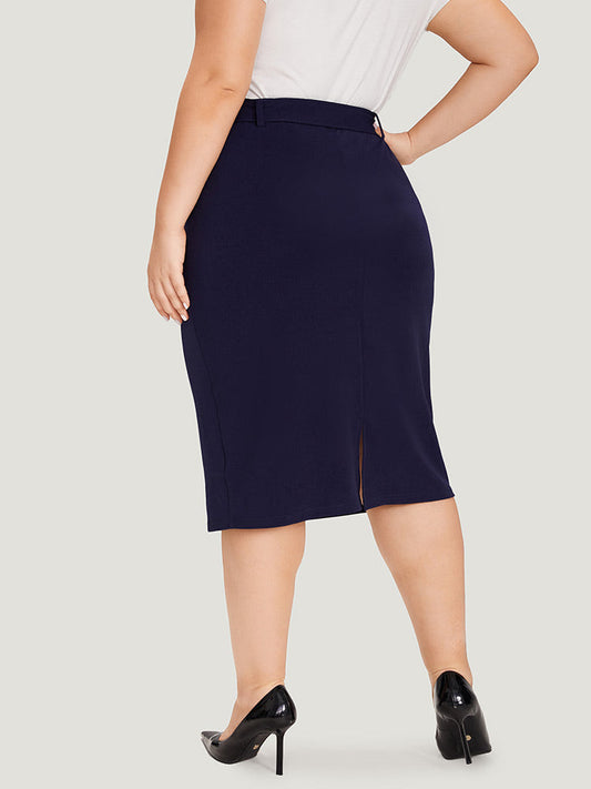 Plain Belted Split Hem Skinny Skirt